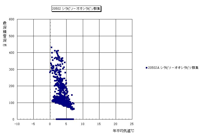 年平均気温−最深積雪深 散布図