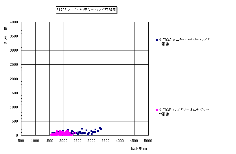 降水量−標高 散布図
