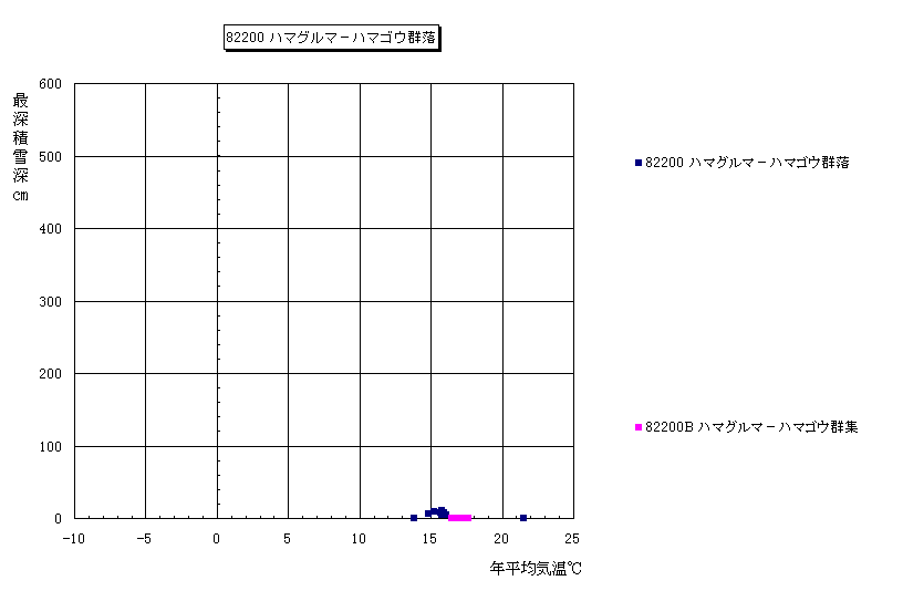 年平均気温−最深積雪深 散布図